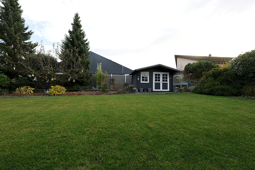 Implantée sur une parcelle plate de 750 m², joliment arborisée et dotée d'un pavillon de jardin, la propriété offre une surface de 185 m² habitables + un studio ou espace polyvalent de 34 m2 avec kitchenette et salle de douches.
